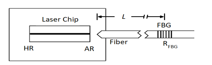 Att konstruera en extern kavitetslaser med hjälp av ett Fiber Bragg-gitter (FBG) är en kostnadseffektiv lösning för att förbättra prestanda hos lågkostnadslasrar. Som visas i figur 1 är FBG inskrivet i fibersvansen, vanligtvis nära det emitterande chipet, och bildar en extern kavitetslaser.